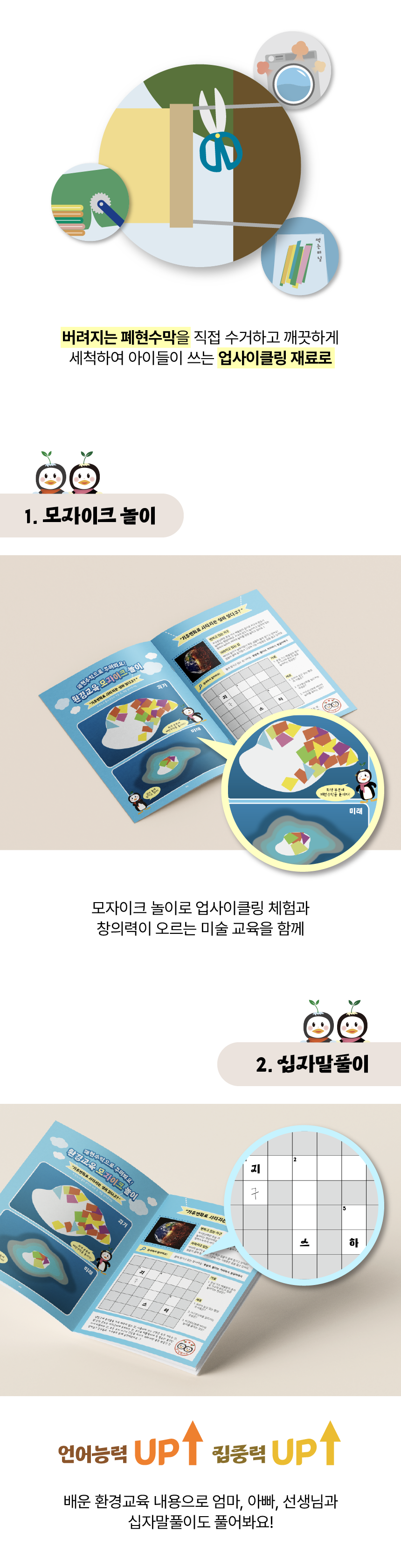모자이크 놀이로 미술교육 한번! 환경이야기를 익히고 환경공부 한번! 십자말풀이로 언어공부까지 한번!