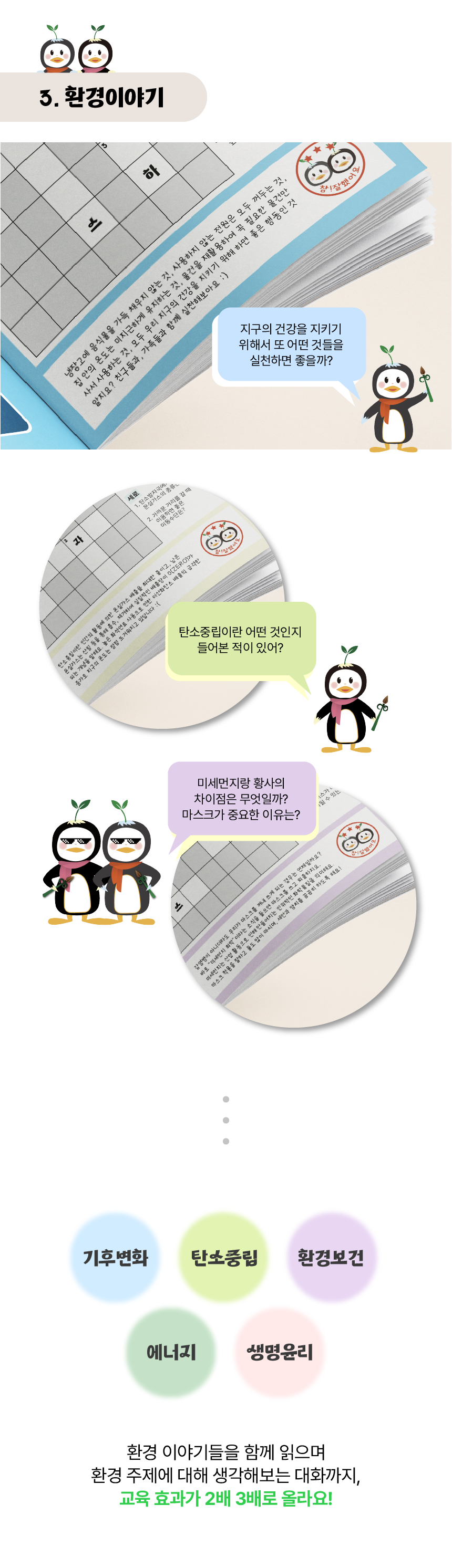 책 한 권으로 5가지 환경주제(기후변화, 탄소중립, 환경보건, 에너지, 생명윤리)에 대해 배워요.